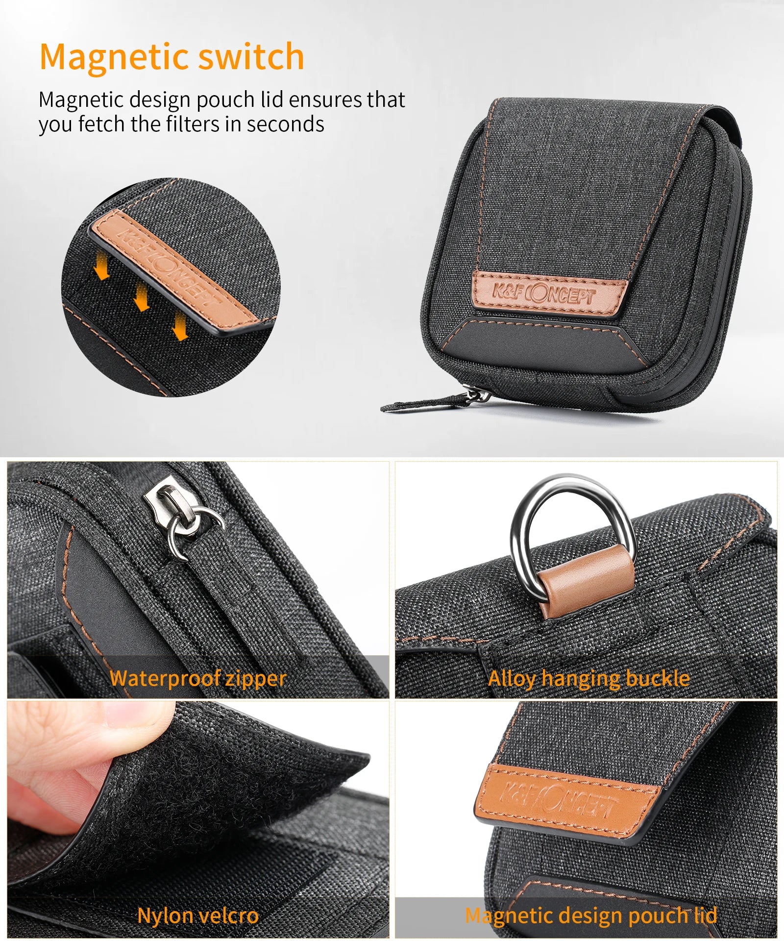 The K&F Concept 4 slot lens filter case is a compact and reliable pouch for storing and protecting circular filters. Designed to hold filters from 37mm to 95mm, it combines solid protection with portability, making it an essential accessory for photographers who use ND, UV, and CPL filters.
